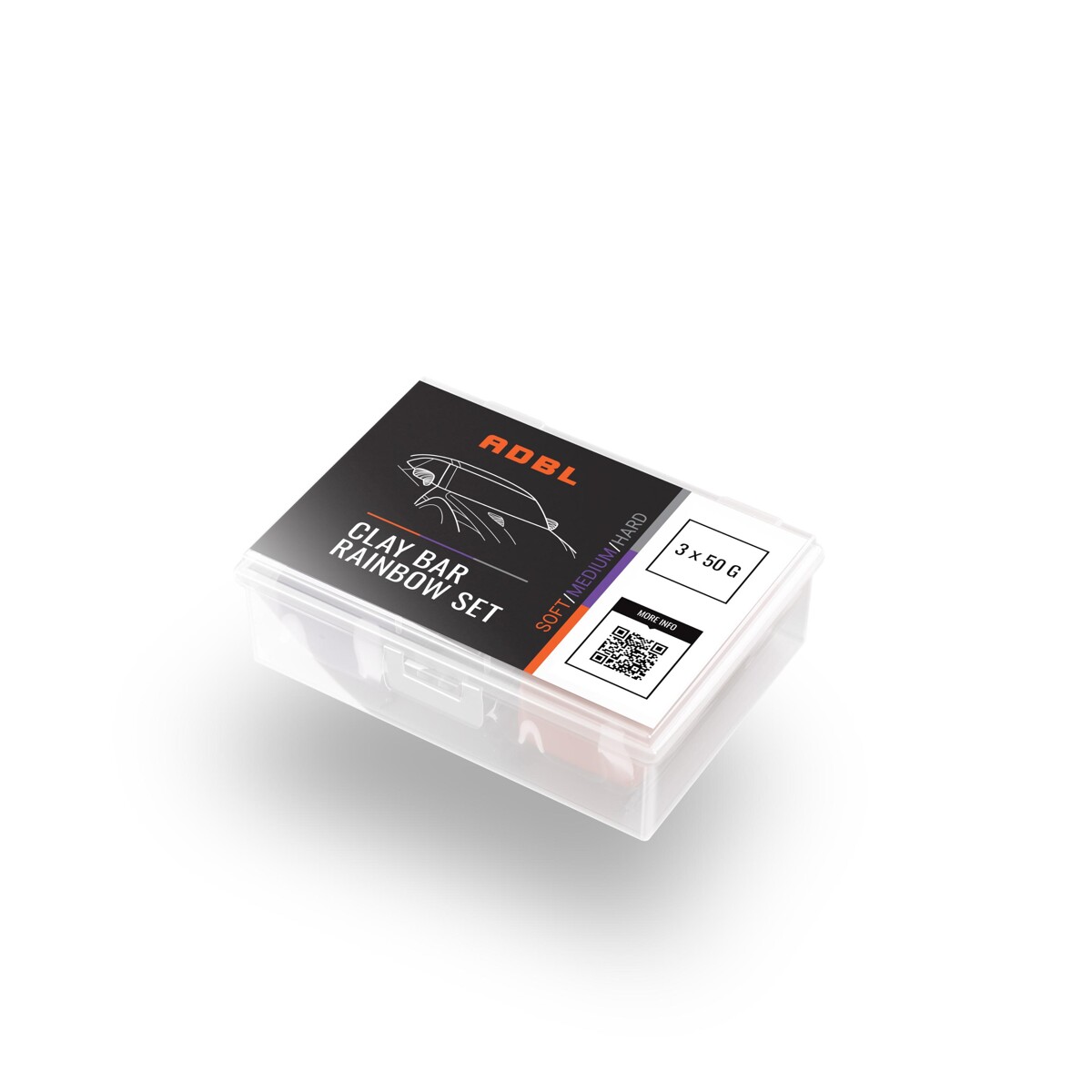 ADBL Clay Bar Rainbow Set to kompleksowe rozwiązanie do pielęgnacji lakieru i szyb, zawierające trzy glinki o różnej twardości: