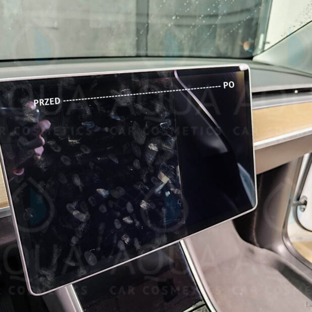 Zalecamy użycie miękkiej mikrofibry (np. z oferty AQUA Cosmetics), aby uniknąć mikrozarysowań i uzyskać idealnie klarowną powierzchnię.