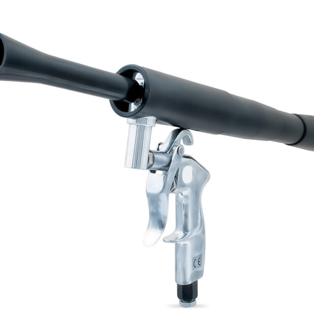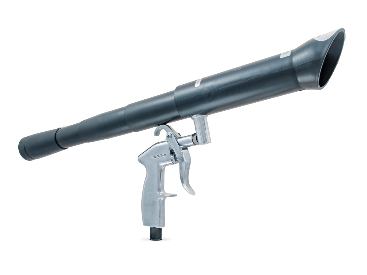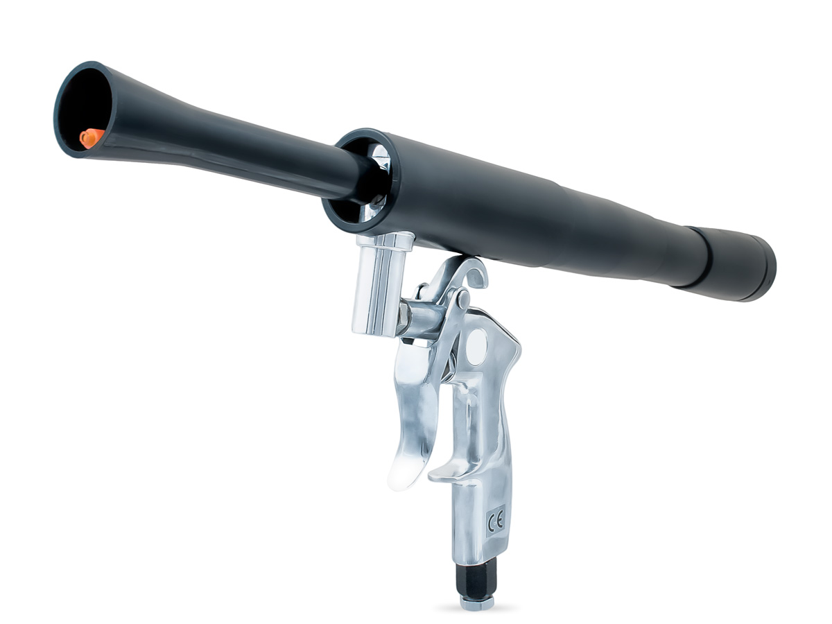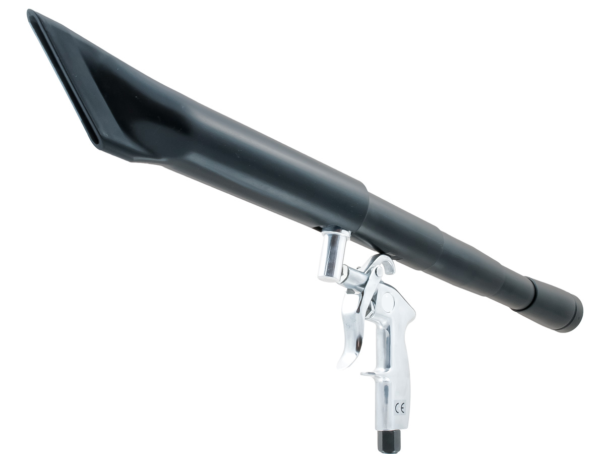 Przyrząd przeznaczony do odkurzania wprawionego w ruch sprężonym powietrzem z dyszą obrotową i wieloma adapterami Przyłącze odkurzacza z szybko obracającym się silikonowym wężem, który powoduje efekt tornada. Dzięki szybkim obrotom generowany jest mały wir, który zapewnia niezwykle dokładne czyszczenie. Wirujący brud jest zasysany bezpośrednio do odkurzacza. 6 dołączonych adapterów. Ze względu na brak płynu czyszczącego można również użyć odkurzacza workowego. Do wnętrza pojazdu: dysze wentylacyjne, schowki, wnętrza drzwi, zawiasy drzwiowe, uszczelki i zawiasy. Ponadto pistolet czyszczący BenBow doskonale nadaje się również do czyszczenia wszystkich tkanin, takich jak foteliki samochodowe, dywany i wycieraczki do stóp. Przyłącze do odkurzacza, które wykorzystuje fizyczny efekt tornada i unosi brud, który jest wchłaniany przez odkurzacz wewnątrz lejka. Ta wersja wykorzystuje szybkoobrotowy wąż silikonowy. Ze względu na szybkie obroty generowany jest wir, który zapewnia niezwykle precyzyjne czyszczenie. Urządzenie może być używane z dostępnymi w handlu odkurzaczami z workami, jeśli nie są stosowane żadne środki czyszczące. Napędzany jest sprężonym powietrzem, najlepiej sprężarką o wydajności ok. 200-250 l/min przy ciśnieniu 6 bar.Kategorie: