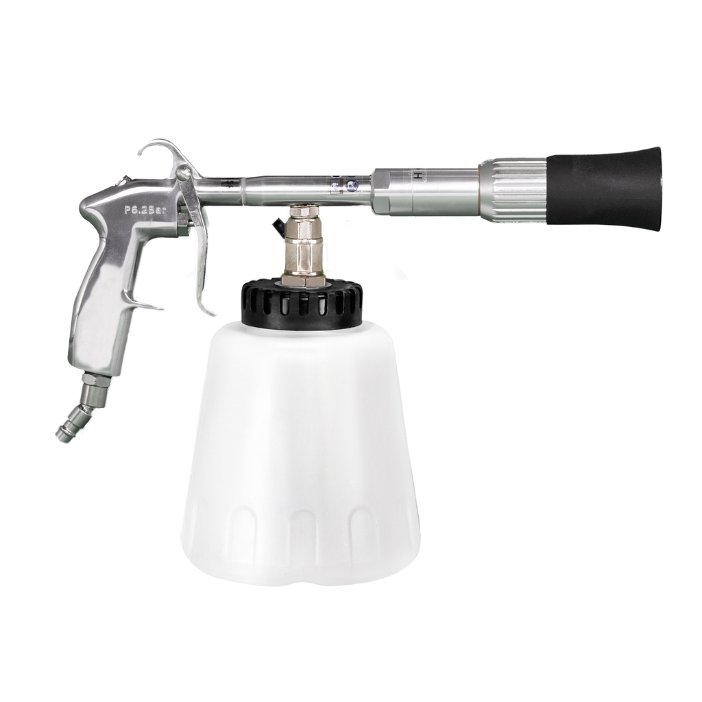 BenBow PRO Cleaning Gun Super Black jest niezwykle przydatnym urządzeniem przeznaczonym do czyszczenia różnych powierzchni w samochodzie. Pistolet tego typu może być wykorzystywany do mycia elementów z tworzyw sztucznych, komory silnika czy wnęk drzwi, ale też do prania tapicerki, dywaników, podsufitek itp. Pozwala błyskawicznie odświeżyć auto bez konieczności szorowania.