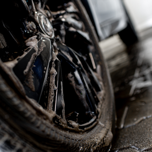 - Dokładnie spłucz felgi obfitym strumieniem wody, aby usunąć resztki produktu.