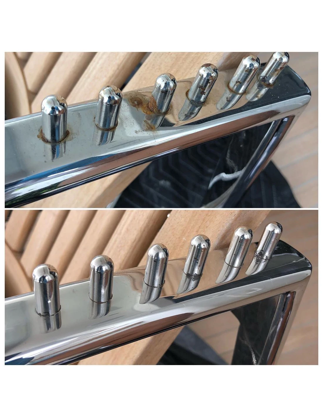 - Zastosowanie: Idealny do renowacji i ochrony powierzchni wykonanych z chromu, aluminium, mosiądzu, miedzi oraz stali nierdzewnej.