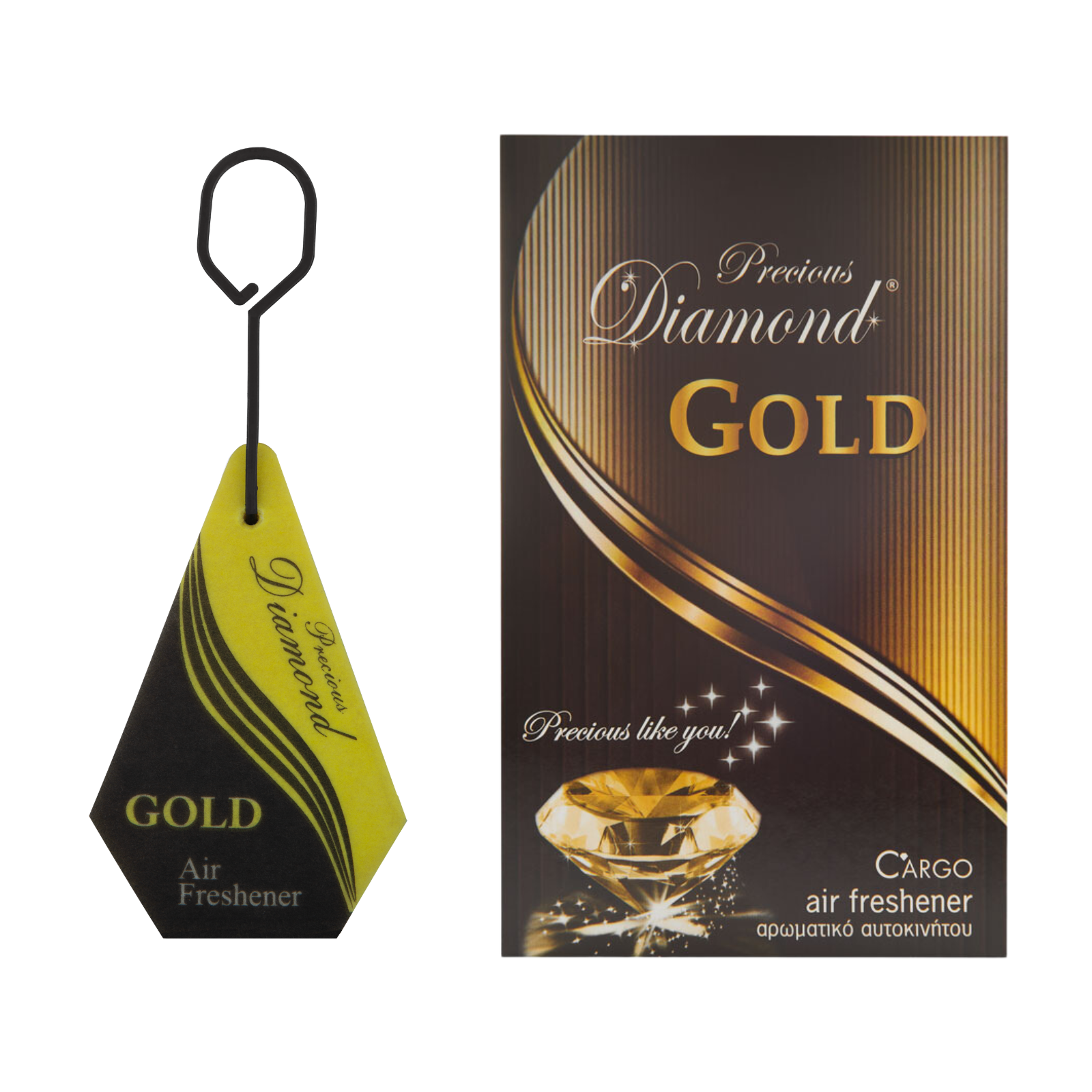 Diament Gold to zawieszka zapachowa, która zachwyca swoją elegancją i luksusem, wprowadzając do wnętrza samochodu atmosferę wyjątkowości.
