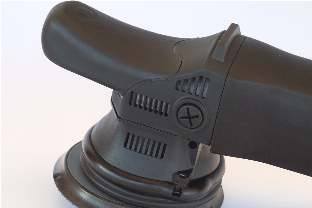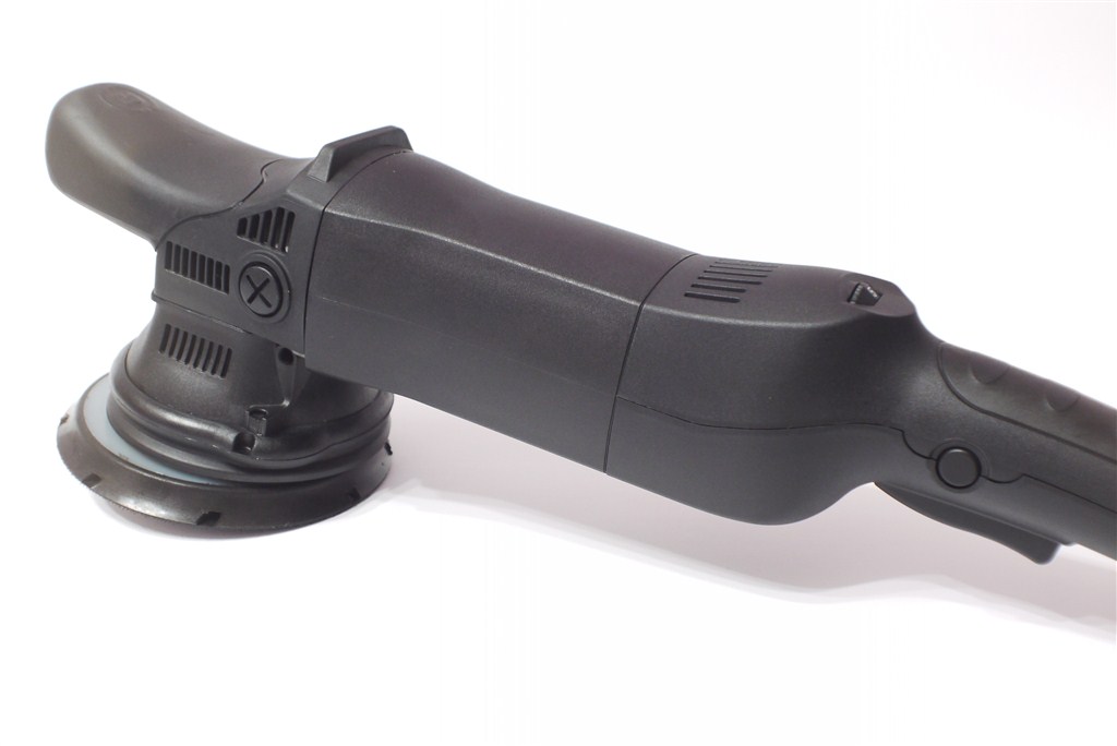 Evoxa HDC15 charakteryzuje się ergonomiczną obudową, w której zastosowano dłuższy i praktyczny przedni grip, powleczony miękką gumą. Tylną rękojeść również pokryto gumą, co poprawia chwyt i komfort pracy. Wygodna, szeroka stopka na grzbiecie polerki zapewnia stabilność podczas odkładania, eliminując ryzyko przypadkowego przewrócenia.