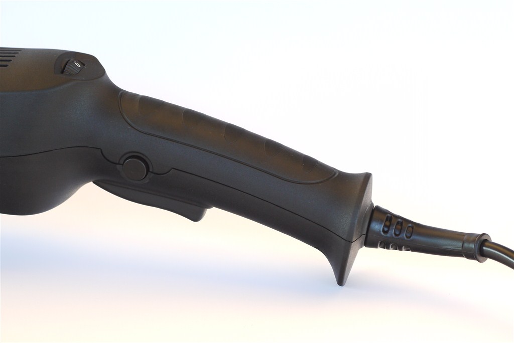Na grzbiecie urządzenia znajduje się potencjometr obrotów w wersji z „klikami”, co ułatwia kontrolę nad prędkością. Dodatkowo, uchwyt boczny jest pokryty miękką pianką, która skutecznie izoluje drgania.