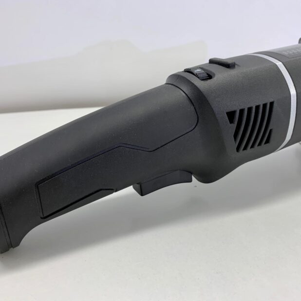 - Ergonomiczna konstrukcja: Lekka (2,5 kg) aluminiowo-kompozytowa budowa oraz ergonomiczne uchwyty Soft Grip sprawiają, że maszyna jest komfortowa w użyciu, nawet podczas długotrwałej pracy. Gumowe stópki na grzbiecie obudowy umożliwiają bezpieczne odkładanie urządzenia.