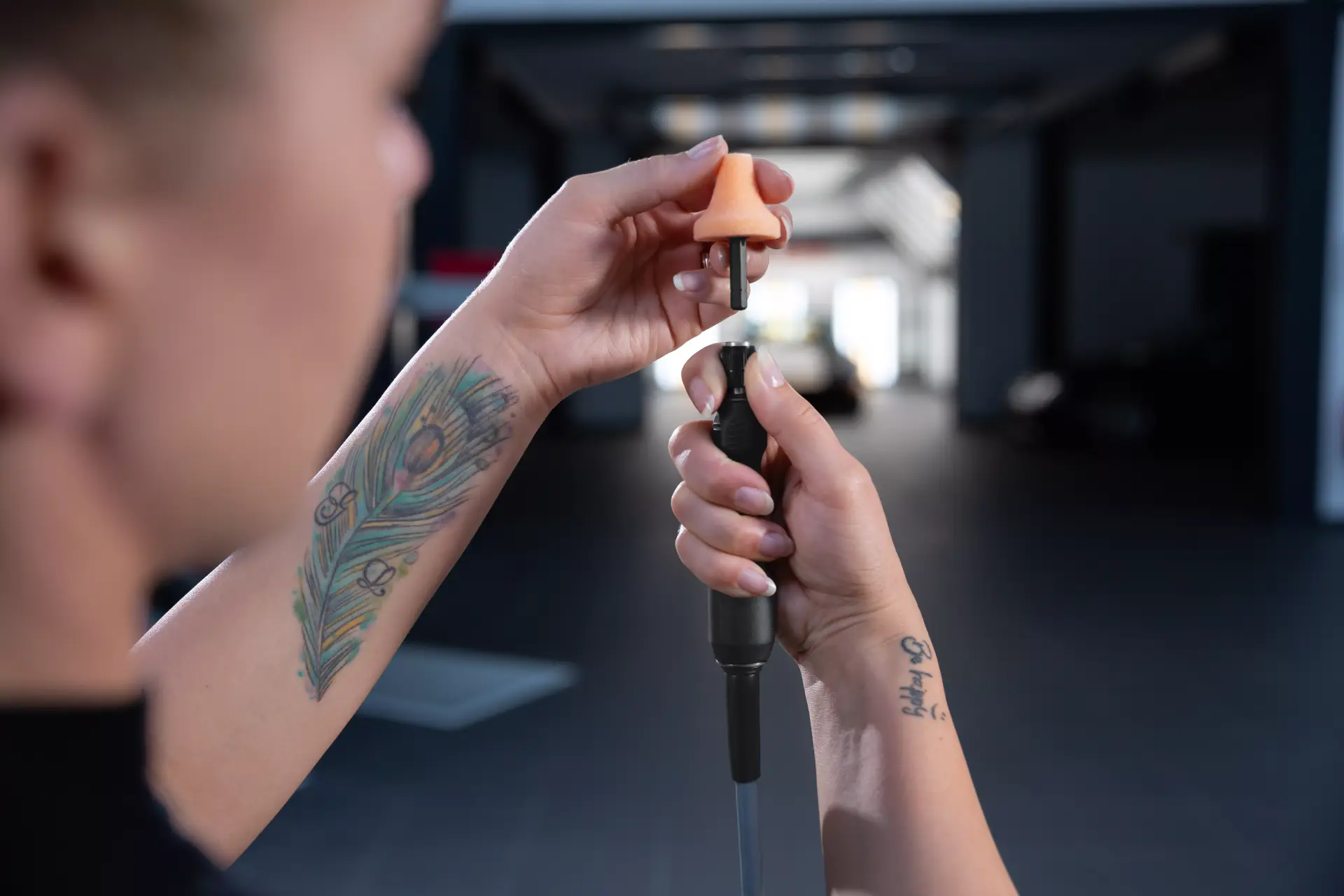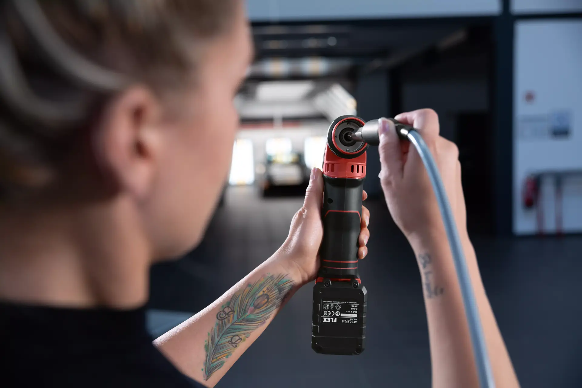 FLEX FS 140 elastyczna przedłużka i polerka PXE 80 10,8-EC tworzą innowacyjny system w sektorze napraw punktowych, do narożników i trudno dostępnych miejsc, których nie można obrabiać konwencjonalnymi polerkami. Długość 1400 mm przy maks. 6000 obr./min Wysokiej jakości materiały gwarantują maksymalny okres użytkowania. Montaż do PXE bez użycia narzędzi dzięki mechanizmowi szybkiej wymiany oraz wymiana akcesoriów bez użycia narzędzi poprzez gniazdo uchwytu końcówek. Doskonała ergonomia dzięki wyjątkowo wąskiej powierzchni uchwytu i idealnej pozycji uchwytu do prowadzenia narzędzia, dla uzyskania najlepszych wyników przy najbardziej precyzyjnych pracach.