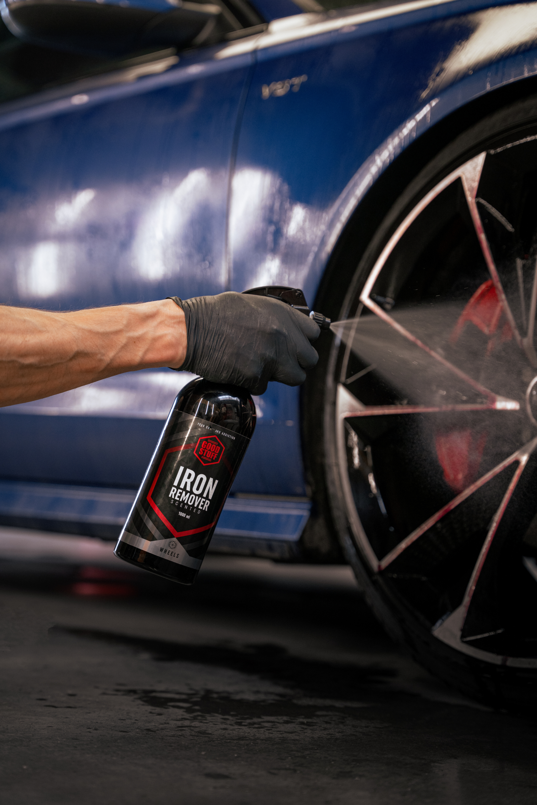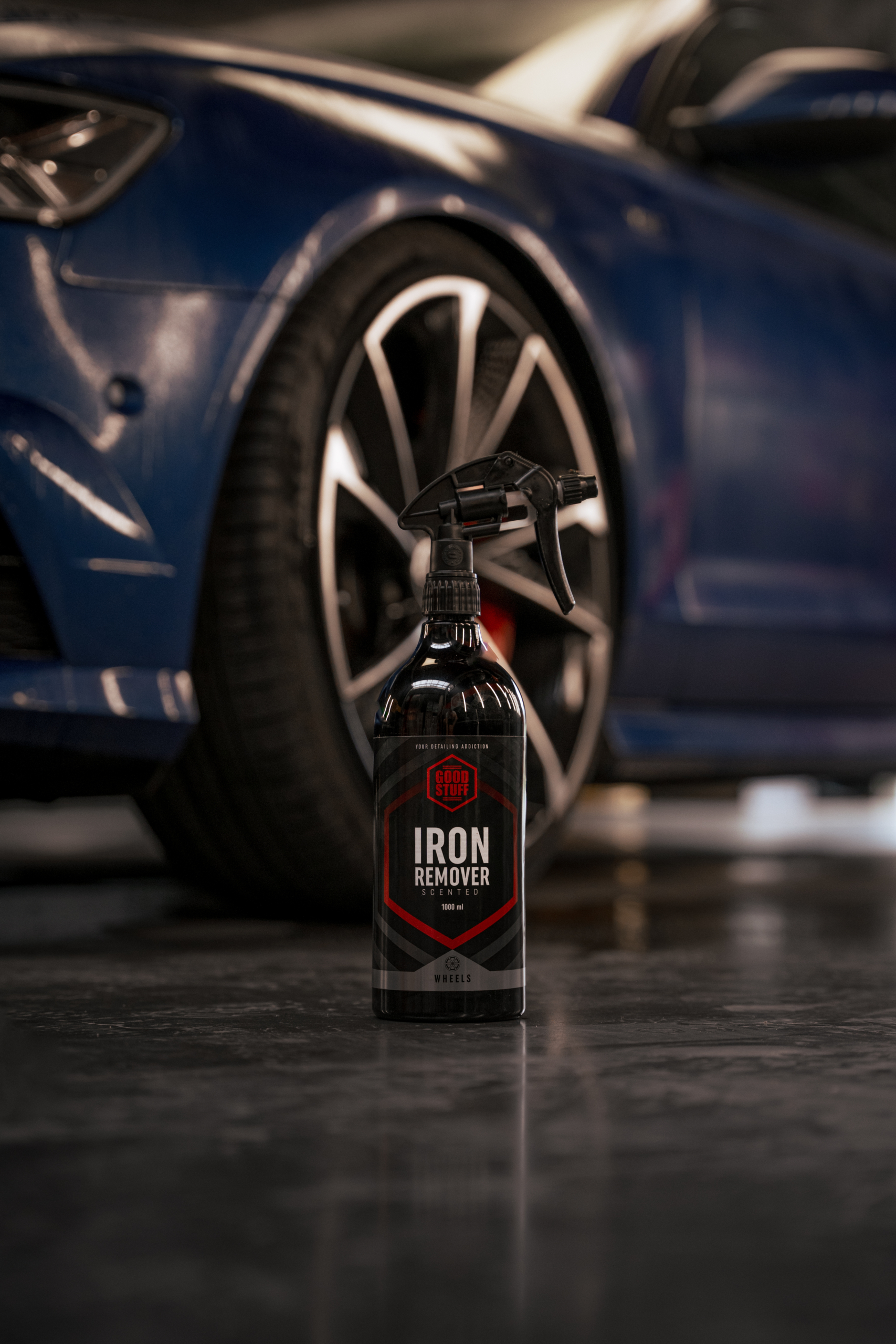 GOOD STUFF Iron Remover 5l Nowa Formuła to deironizer o neutralnym pH, dokładnie rozpuszczający osady metaliczne, takie jak lotna rdza czy pył z klocków hamulcowych. Jego delikatny skład sprawia, że może być stosowany do czyszczenia felg, ale też karoserii.