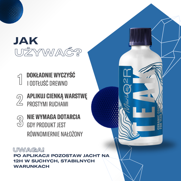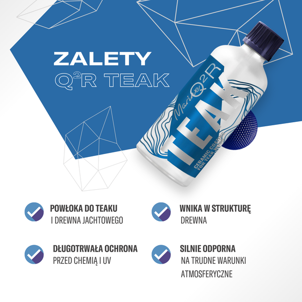GYEON Q²R Marine TEAK to zaawansowana powłoka ceramiczna zaprojektowana specjalnie do ochrony drewna jachtowego w ekstremalnych warunkach morskich. Delikatnie penetruje strukturę drewna, tworząc niewidzialną, oddychającą barierę, która skutecznie odpycha wodę, zabrudzenia i chemikalia, jednocześnie zachowując naturalny kolor i fakturę powierzchni.