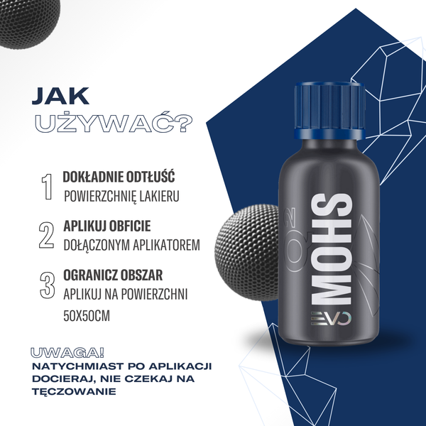 GYEON Q² Mohs EVO Light Box to całkowicie przeprojektowana legendarna powłoka ceramiczna, wprowadzająca innowacyjną technologię polisilazanów modyfikowanych fluorem. Dzięki temu lakier zyskuje maksymalną trwałość, odporność chemiczną oraz doskonałe właściwości hydrofobowe i samooczyszczania. Wersja Light Box jest jednowarstwowa i nie zawiera Q²M Cure, co czyni ją lekkim, łatwym w użyciu zestawem. Nowy aplikator Q²M Coating Applicator oraz dedykowane ściereczki (Q²M SoftWipe lub PolishWipe) umożliwiają precyzyjne i szybkie nakładanie powłoki.