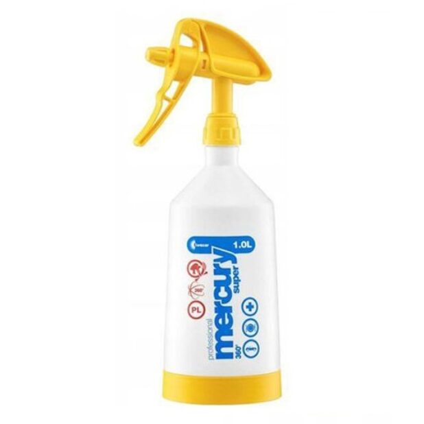 Opryskiwacze Mercury Super Pro+ 360 to nowsza wersja Mercury Super Pro+ wzbogacona o system 360® STRESS FREE, umożliwiający aplikację cieczy niezależnie od położenia opryskiwacza. Są idealnym rozwiązaniem dla firm sprzątających, myjni samochodowych, warsztatów samochodowych, ale również dla domowych użytkowników. Najlepiej sprawdzają się podczas pracy na małych powierzchniach takich jak meble, okna i szyby samochodowe, deski rozdzielcze, tapicerki, itp. Charakteryzują się podwyższoną odpornością na preparaty o odczynie kwaśnym i zasadowym.