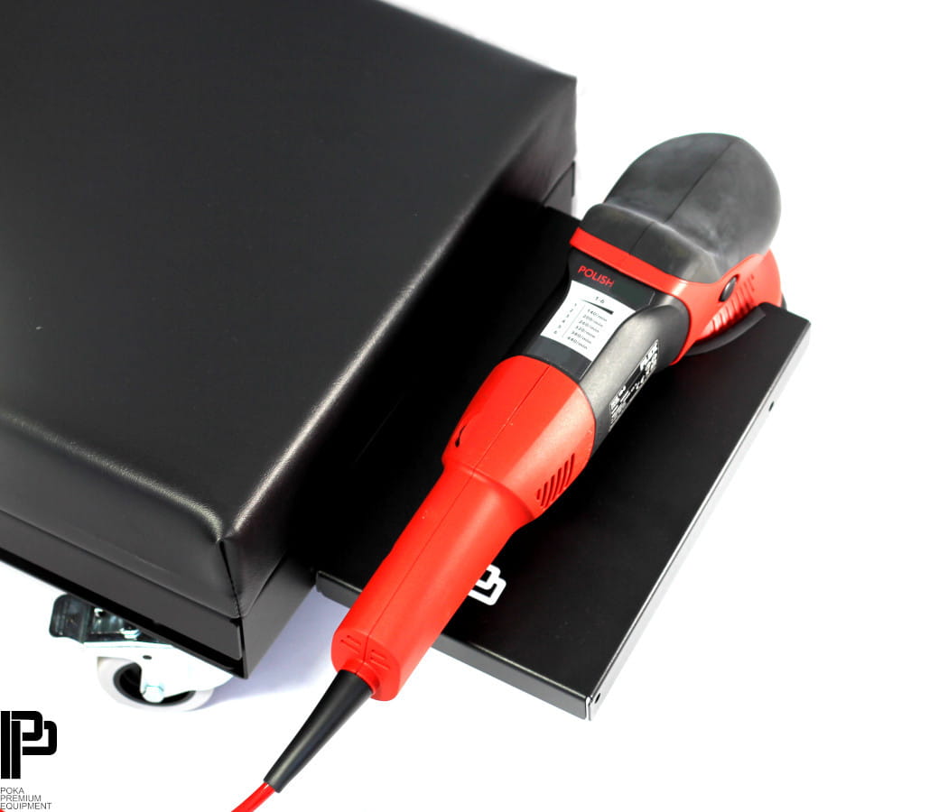 Wysokiej jakości niskie siedzisko/klęcznik detailingowy do codziennego użytku. Wykonane z najlepszych jakościowo i technologicznie stali konstrukcyjnych pokrytych grubą warstwą cynku, chroniącą przed rdzą oraz korozją. Siedzisko finalnie zostało dwustronnie polakierowane wysokiej jakości farbą proszkową o drobniej strukturze zapewniającej ochronę przed zarysowaniami oraz płowieniem. Wysoce elastyczna, wysokiej klasy pianka, z w pełni laminowaną płytą MDF o grubości 18 mm i materiałem winylowym, zapewni najwyższy komfort i stabilność. Ponadto pianka nie wchłania kurzu i drobnoustrojów chorobotwórczych takich jak bakterie, grzyby i roztocza. Precyzyjnie wykonany, dzięki zaawansowanej technologii CNC, nie posiada ostrych krawędzi oraz zakończeń. Siedzisko posiada otwory montażowe do powieszenia dodatkowego uchwytu na maszyny polerskie oraz uchwytu na powłoki ceramiczne. Uchwyty można zamontować z lewej lub prawej strony. * Uchwyty nie są dołączone do siedziska. Należy je kupić osobno Duże koła wykonane są z gumowego materiału. Dwa z nich posiadają hamulce. Siedzisko swobodnie poruszania się po nierównych powierzchniach. Charakterystyka:- Wykonane z blachy o grubości 2 mm