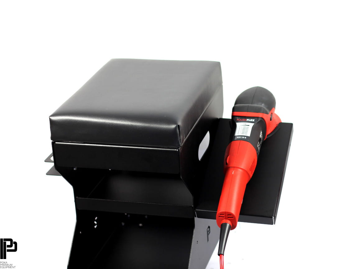 Wysokiej jakości mniejsza wersja niskiego siedzisko detailingowego do codziennego użytku. Wykonane z najlepszych jakościowo i technologicznie stali konstrukcyjnych pokrytych grubą warstwą cynku, chroniącą przed rdzą oraz korozją. Siedzisko finalnie zostało dwustronnie polakierowane wysokiej jakości farbą proszkową o drobniej strukturze zapewniającej ochronę przed zarysowaniami oraz płowieniem. Wysoce elastyczna, wysokiej klasy pianka, z w pełni laminowaną płytą MDF o grubości 18 mm i materiałem winylowym, zapewni najwyższy komfort i stabilność. Ponadto pianka nie wchłania kurzu i drobnoustrojów chorobotwórczych takich jak bakterie, grzyby i roztocza. Precyzyjnie wykonany, dzięki zaawansowanej technologii CNC, nie posiada ostrych krawędzi oraz zakończeń. Siedzisko posiada otwory montażowe do powieszenia dodatkowego uchwytu na maszyny polerskie oraz uchwytu na powłoki ceramiczne. Uchwyty można zamontować z lewej lub prawej strony. * Uchwyty nie są dołączone do siedziska. Należy je kupić osobno Duże koła wykonane są z gumowego materiału. Dwa z nich posiadają hamulce. Siedzisko swobodnie poruszania się po nierównych powierzchniach. Charakterystyka: