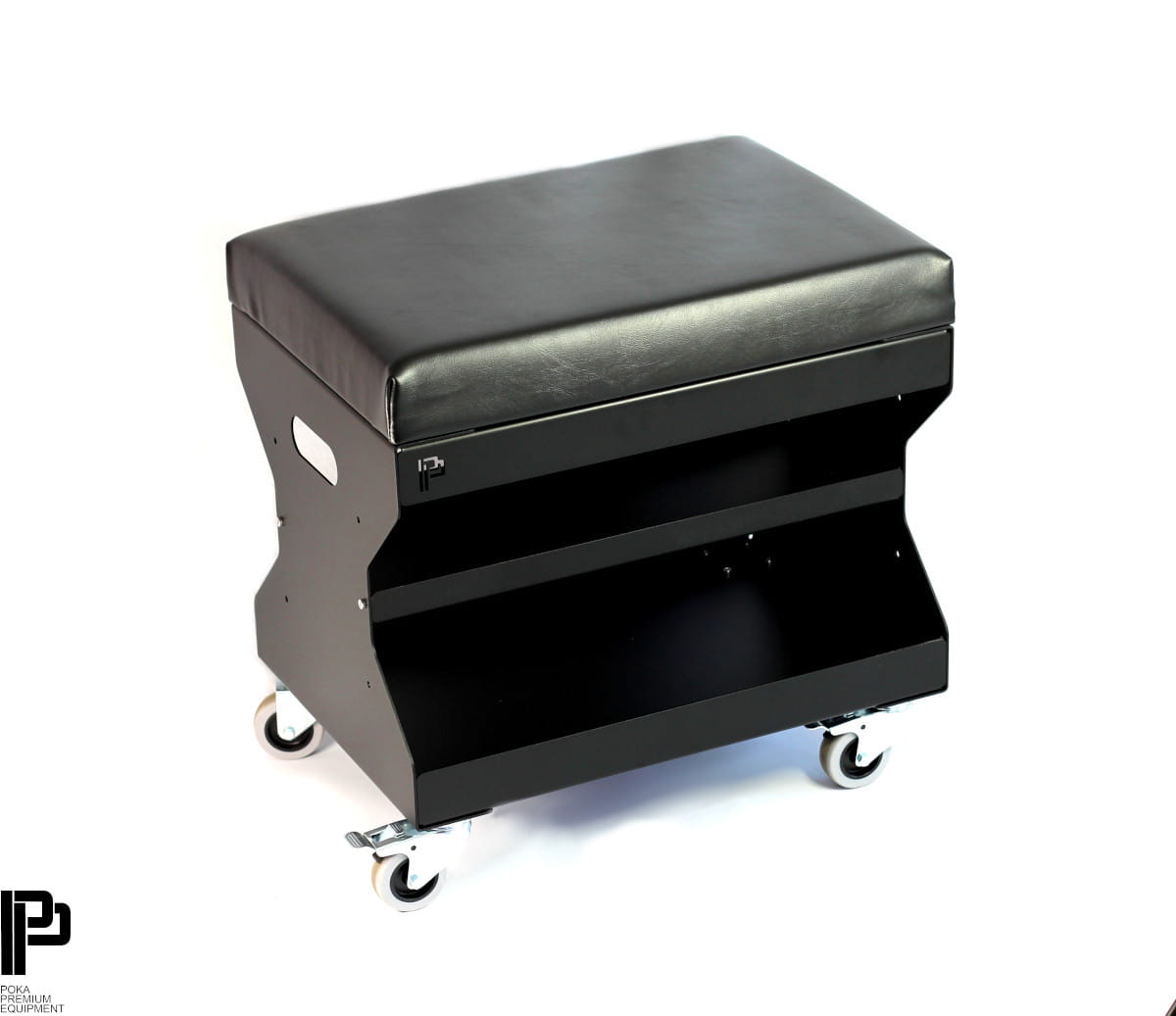Wysokiej jakości siedzisko detailingowe do codziennego użytku. Wykonane z najlepszych jakościowo i technologicznie stali konstrukcyjnych pokrytych grubą warstwą cynku, chroniącą przed rdzą oraz korozją. Siedzisko finalnie zostało dwustronnie polakierowane wysokiej jakości farbą proszkową o drobniej strukturze zapewniającej ochronę przed zarysowaniami oraz płowieniem. Wysoce elastyczna, wysokiej klasy pianka, z w pełni laminowaną płytą MDF o grubości 18 mm i materiałem winylowym, zapewni najwyższy komfort i stabilność. Ponadto pianka nie wchłania kurzu i drobnoustrojów chorobotwórczych takich jak bakterie, grzyby i roztocza. Precyzyjnie wykonany, dzięki zaawansowanej technologii CNC, nie posiada ostrych krawędzi oraz zakończeń. Siedzisko posiada otwory montażowe do powieszenia dodatkowego uchwytu na maszyny polerskie oraz uchwytu na powłoki ceramiczne. Uchwyty można zamontować z lewej lub prawej strony. * Uchwyty nie są dołączone do siedziska. Należy je kupić osobno Duże koła wykonane są z gumowego materiału. Dwa z nich posiadają hamulce. Siedzisko swobodnie poruszania się po nierównych powierzchniach. Charakterystyka:- Wykonane z blachy o grubości 2 mm