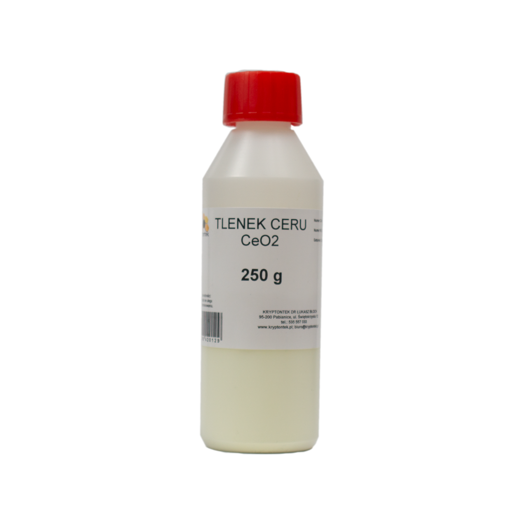 Polerowanie Szyb Tlenek Ceru 250g jest białym (bądź wpadającym w odcień kremowego) proszkiem. Po zmieszaniu z wodą tworzy pastę, którą stosuje się do usuwania rys oraz wygładzania i nabłyszczania powierzchni szklanych. Pozwala w prosty sposób wypolerować wszystkie niedoskonałości – wystarczy skorzystać z polerki lub wiertarki oraz odpowiednio dobranego pada. Tlenek ceru250g zgodnie z przepisami nie jest zaliczany jako substancja. Preparat może jednak działać drażniąco na błony śluzowe i oczy, a wdychanie pyłu może powodować podrażnienie górnych dróg oddechowych. Z tego względu podczas stosowania trzeba zachować wymagane środki ostrożności. Produkt reprezentuje najwyższą jakość wykonania, a także jest zapakowany w specjalne opakowanie HDPE z plombą gwarancyjną. Wybierając go kupujesz bezpiecznie i odpowiedzialnie.Tlenek ceru do polerowania szkła i usuwania rys