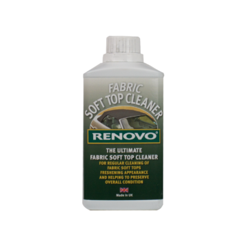 Renovo RV1 Soft Top Cleaner to specjalistyczny środek czyszczący przeznaczony do regularnego utrzymania w czystości miękkich dachów kabrioletów wykonanych z płótna, brezentu oraz moheru. Produkt jest idealny do usuwania kurzu, starego, zaschniętego brudu, pleśni i plam, zapewniając jednocześnie bezpieczeństwo dla tkaniny bez ryzyka przebarwień.