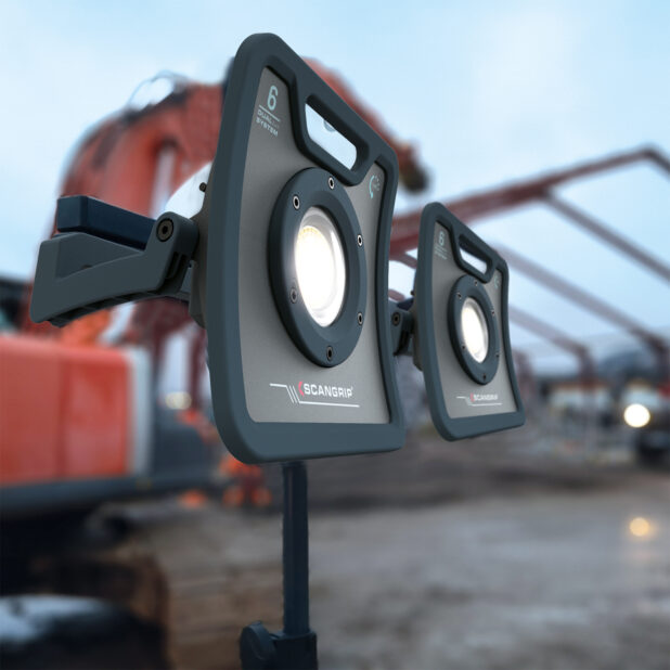 Ustaw lampę na statywie SCANGRIP lub przenieś za uchwyt – lampa jest łatwa w transporcie.