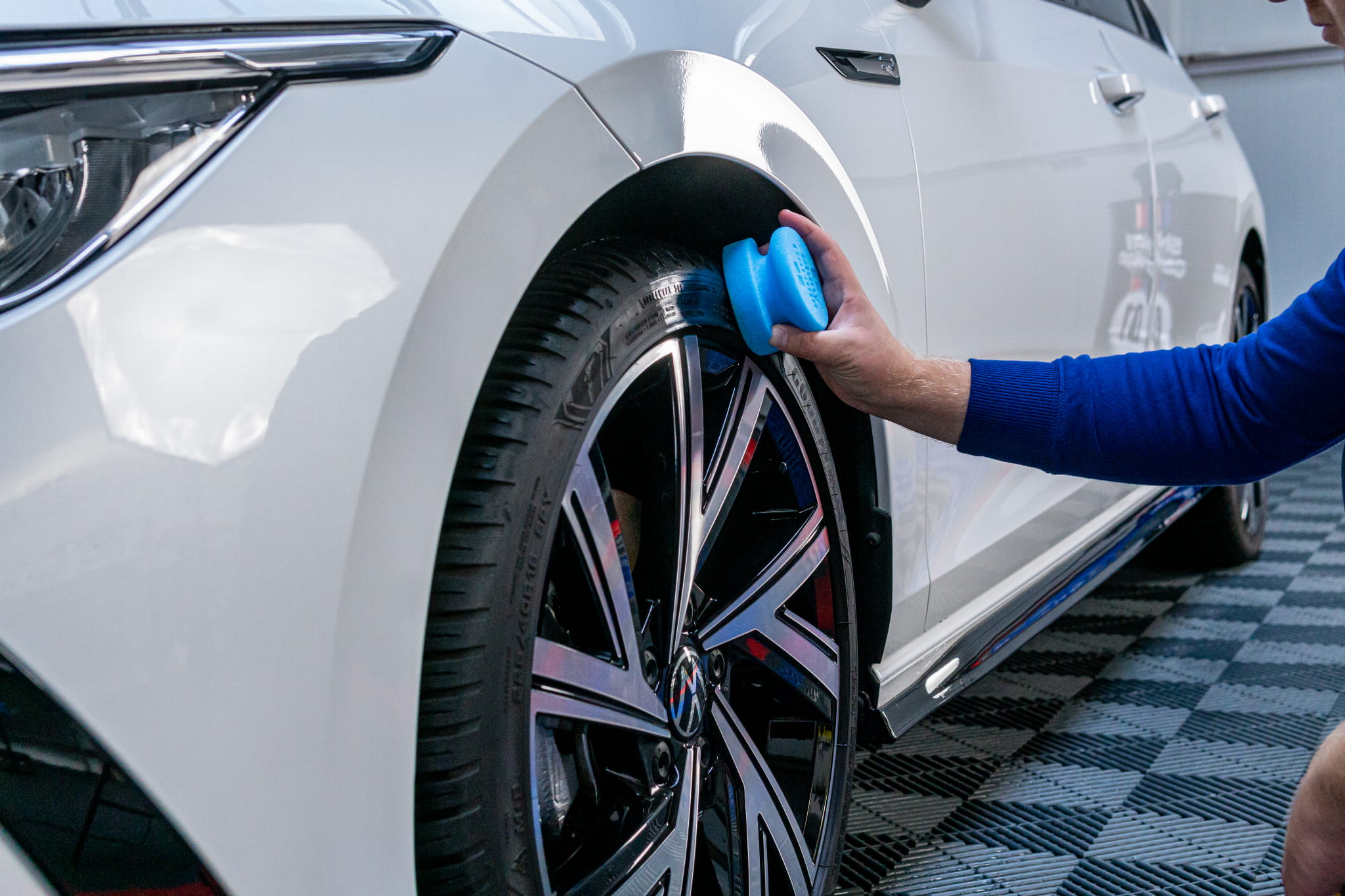 1. Dokładnie umyj i osusz oponę za pomocą Pure Black Tire Cleaner.