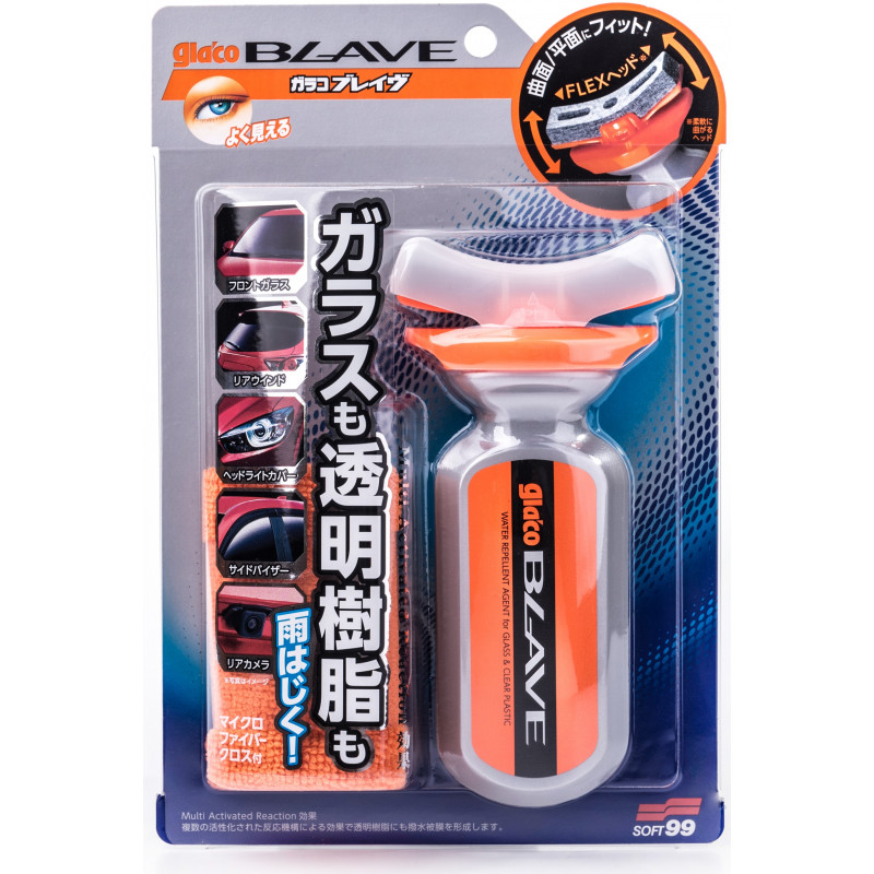 PIERWSZA w historii "niewidzialna wycieraczka" Glaco o silnych właściwościach hydrofobowych dla szkła i tworzyw sztucznych. Uniwersalny produkt który nadaje się nie tylko do szyb, lecz również reflektorów, osłon kasków motocyklowych i gogli. Częste zmiany pogody na przełomie zimy i wiosny, oraz opady deszczu utrudniają utrzymanie samochodu w czystości. Glaco Blave skutecznie zabezpieczy Twoje auto, oraz zagwarantuje bezpieczeństwo podczas jazdy w trudnych warunkach dzięki swoim hydrofobowym właściwościom, które tworzą efekt niewidzialnej wycieraczki! Produkt tworzy silną powłokę nie tylko na szybach, ale również na przeźroczystych tworzywach sztucznych takich jak klosze reflektorów przednich i tylnych, osłonach kasków motocyklowych, goglach itd. Charakteryzuje się bardzo szybkim procesem aplikacji. Wystarczy nałożyć Glaco Blave, wytrzeć, a produkt natychmiast zacznie działać! Sposób użycia:- Przed użyciem produktu wyczyścić powierzchnie w celu usunięcia wszystkich zabrudzeń.