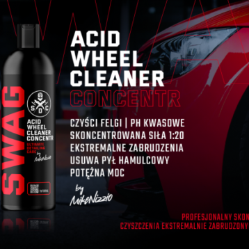 Swag ACID WHEEL CLEANER 1:20 500ml to profesjonalny cleaner kwasowy do felg, który wyróżnia się kwaśnym pH i ekstremalną skutecznością. Dzięki skoncentrowanej formule produkt można rozcieńczać, dopasowując siłę działania do stopnia zabrudzenia obręczy.
