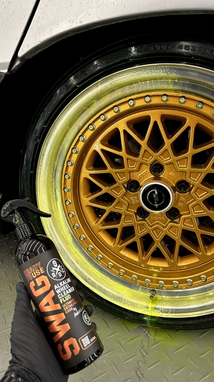 Swag ALKALINE WHEEL CLEANER FLUO GEL+ RTU V.2 to profesjonalny preparat do bieżącej pielęgnacji felg, oparty na zasadowym pH i żelowej formule. Zaprojektowany z myślą o Studiach Detailingowych oraz Entuzjastach motoryzacji, łączy wysoką skuteczność działania z bezpieczeństwem dla czyszczonych powierzchni.
