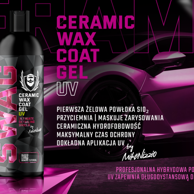Swag CERAMIC WAX COAT GEL UV to rewolucyjna powłoka żelowa, łącząca wygodę klasycznego wosku z trwałością ceramicznych zabezpieczeń. Dzięki markerowi UV aplikacja staje się maksymalnie precyzyjna, a efekt – spektakularny: głęboki połysk, intensywny Wet Look, śliskość powierzchni oraz silna ochrona przed czynnikami zewnętrznymi. To idealny wybór zarówno dla profesjonalistów, jak i pasjonatów, którzy chcą wynieść wygląd swojego pojazdu na zupełnie nowy poziom.