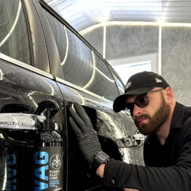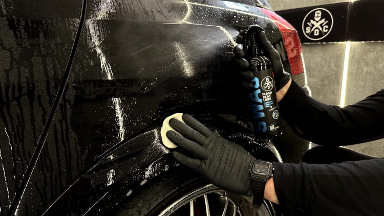 Za pomocą atomizera rozpyl Swag FLASH CLAY LUBE na wybrany element pojazdu.