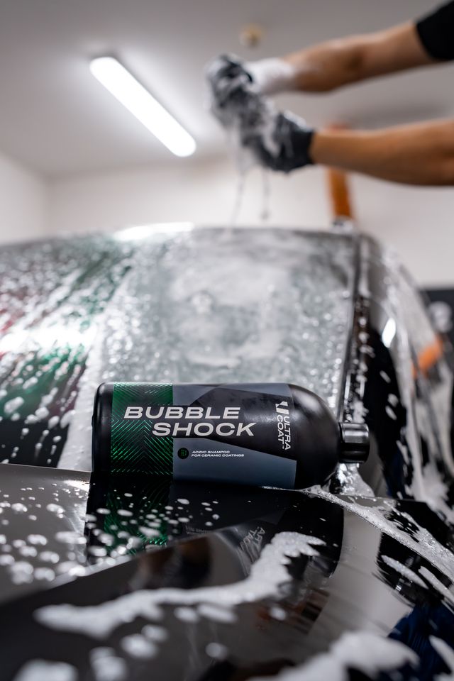 Ultracoat Bubble Shock to innowacyjny szampon stworzony z myślą o efektywnej pielęgnacji powierzchni zabezpieczonych powłokami ceramicznymi. Dzięki kwaśnemu pH, doskonale nadaje się do regularnej konserwacji i serwisowania powłok, skutecznie przywracając ich pierwotne właściwości oraz wygląd.