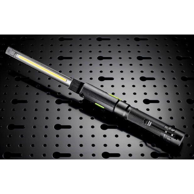 • Kompaktowość i mobilność: Niewielkie wymiary i składana głowica sprawiają, że latarka jest idealna do pracy w ciasnych przestrzeniach.