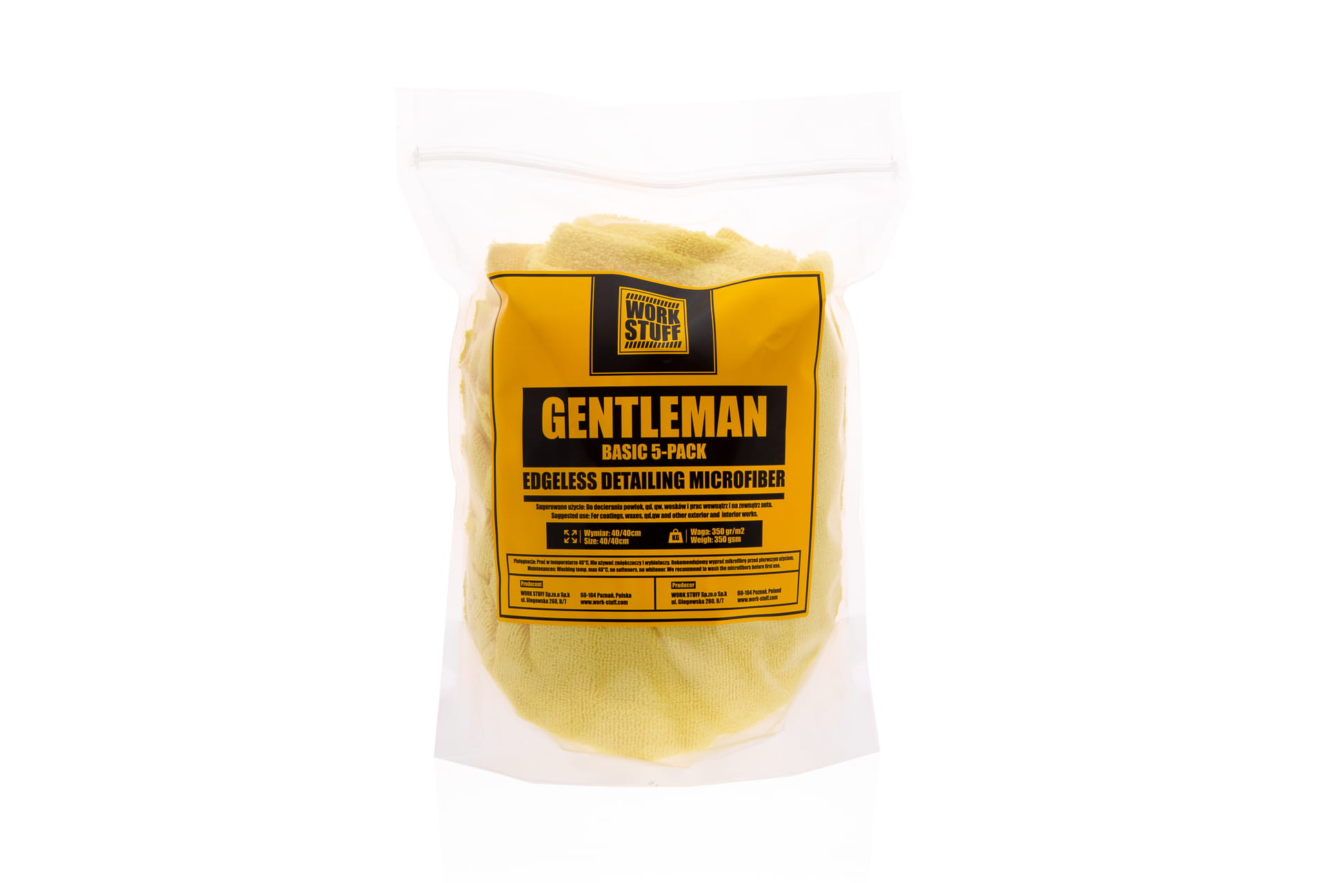 Work Stuff Gentleman Basic Yellow 5-Pack to profesjonalny zestaw pięciu wysokiej jakości ściereczek z mikrofibry, stworzony z myślą o efektywnej i bezpiecznej pielęgnacji pojazdów. Seria Gentleman Basic to rozwiązanie dla osób ceniących uniwersalność i wysoką kulturę pracy. Dzięki gramaturze 350 g/m², ręczniki te oferują doskonałą chłonność, pozostając jednocześnie niezwykle poręcznymi narzędziami do precyzyjnych zadań detailingowych.