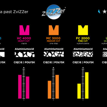 ZviZZer ZviZZer jest brytyjską marką specjalistycznych produktów przeznaczonych do pracy z lakierem. W jej ofercie można znaleźć wiele profesjonalnych preparatów oraz akcesoriów, w tym m.in. pady, pasty polerskie, krążki ścierne czy środki ochronne i pielęgnacyjne. Wszystkie artykuły są wytwarzane w fabryce w Niemczech, z najlepszych jakościowo składników oraz materiałów. Firma jest znana na całym świecie i jest ceniona przez pasjonatów oraz fachowców z branży motoryzacyjnej, m.in. lakierników, mechaników czy detailierów. ZviZZer jest odpowiedzialny za wiele innowacji oraz trendów na rynku, ponieważ tworzy nowoczesne produkty, które dają zachwycające efekty przy minimalnym wysiłku. Marka posiada propozycje dla różnych rodzajów lakieru, które pozwalają wykonać specjalistyczne zabiegi i uzyskać odpowiedni rodzaj wykończenia. Z pomocą produktów tej marki da się w pełni profesjonalny sposób wypielęgnować oraz zabezpieczyć karoserię, a także wykonać jej renowację – niezależnie od stopnia zniszczeń.